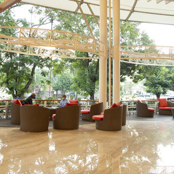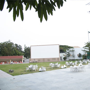 The Movie Lawn has a South Indian Tiffin Centre, Chat Counter, Juice Counter, Kebab Counter and other south Indian items counter, including an ice cream counter and an organic items counter.